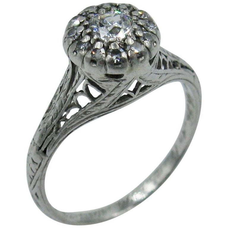 Art Deco Diamond Platinum Wedding Engagement Ring Edwardian
