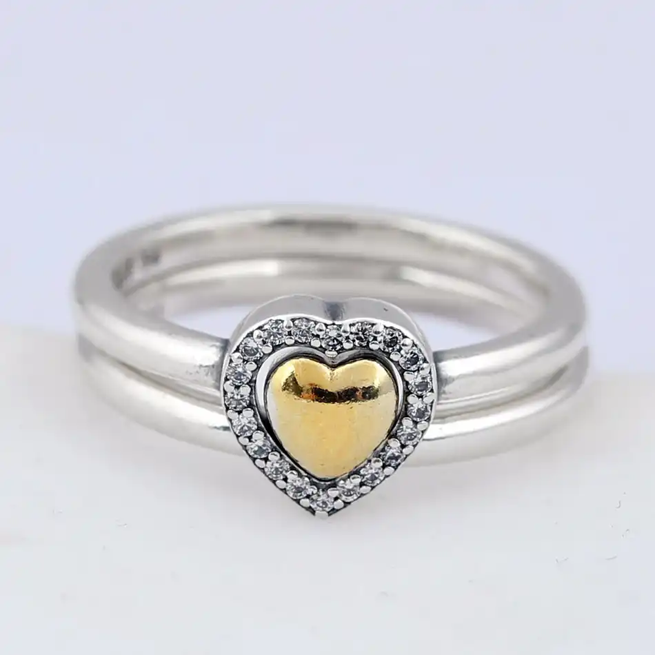 Authentic 925 Sterling Silver Ring Heart Of Golden Puzzle Gift Set Rings For Women Wedding Party Gift Fine Pandora Jewelry