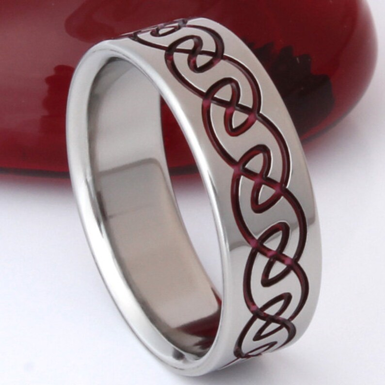 Irish Celtic Titanium Wedding Band Celtic Knot Ring Red String Of Fate Ring Infinity Design Ck13