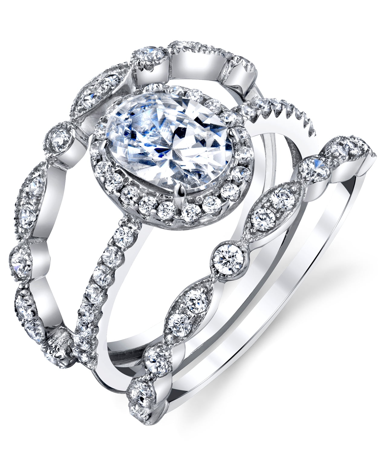 Ring Wright Co Sterling Silver 925 Engagement Rings Wedding Band Bridal Set Oval Cubic Zirconia 3pcs