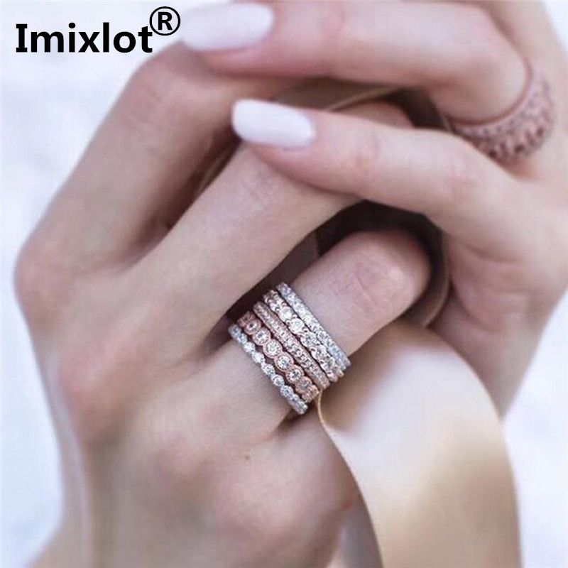 Imixlot Creative 5pcs Set Women Mid Finger Stacking Rings Fashion Girl S Gold And Silver Stack Rings Set Wedding Band Women
