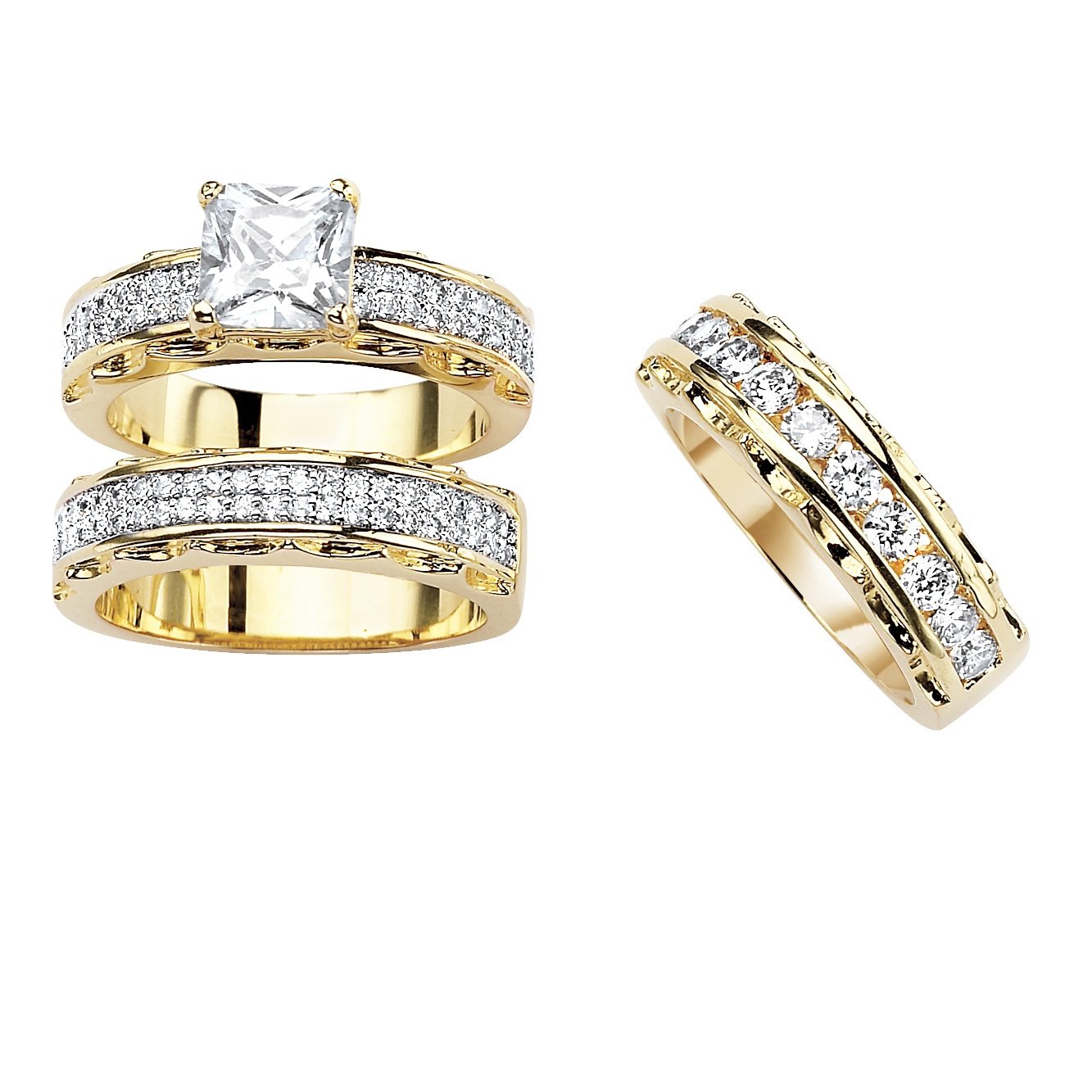 Palm Beach Jewelry 14k Yellow Gold Plated Princess Cut And Round Cubic Zirconia 3 Piece Bridal Ring Set