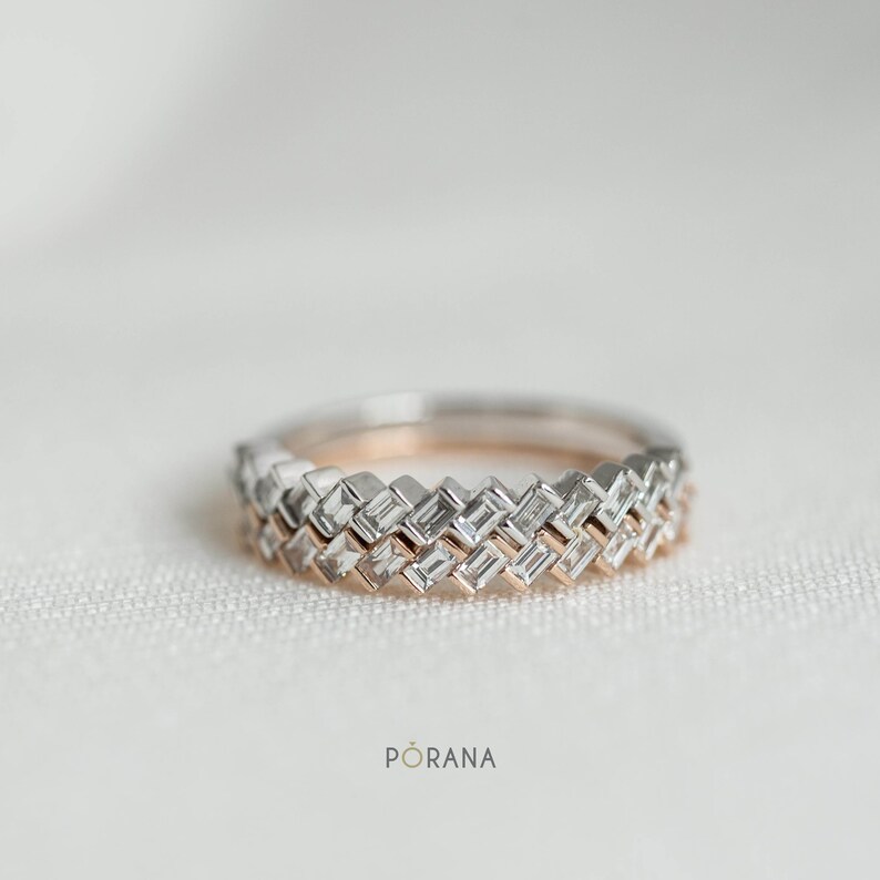 Weave Baguette Diamond Wedding Band Band Ring In 14k 18k Solid Gold And Platinum Stacking Ring