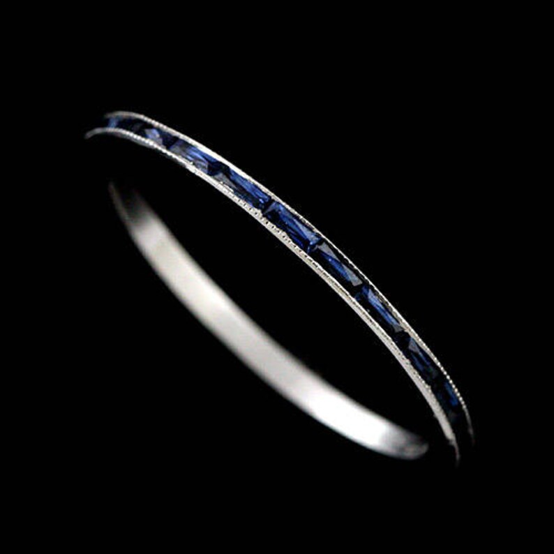 Sapphire Baguette Wedding Band Blue Sapphire Eternity Band Super Thin Platinum Wedding Band Stackable Wedding Band Gemstone Wedding Ring