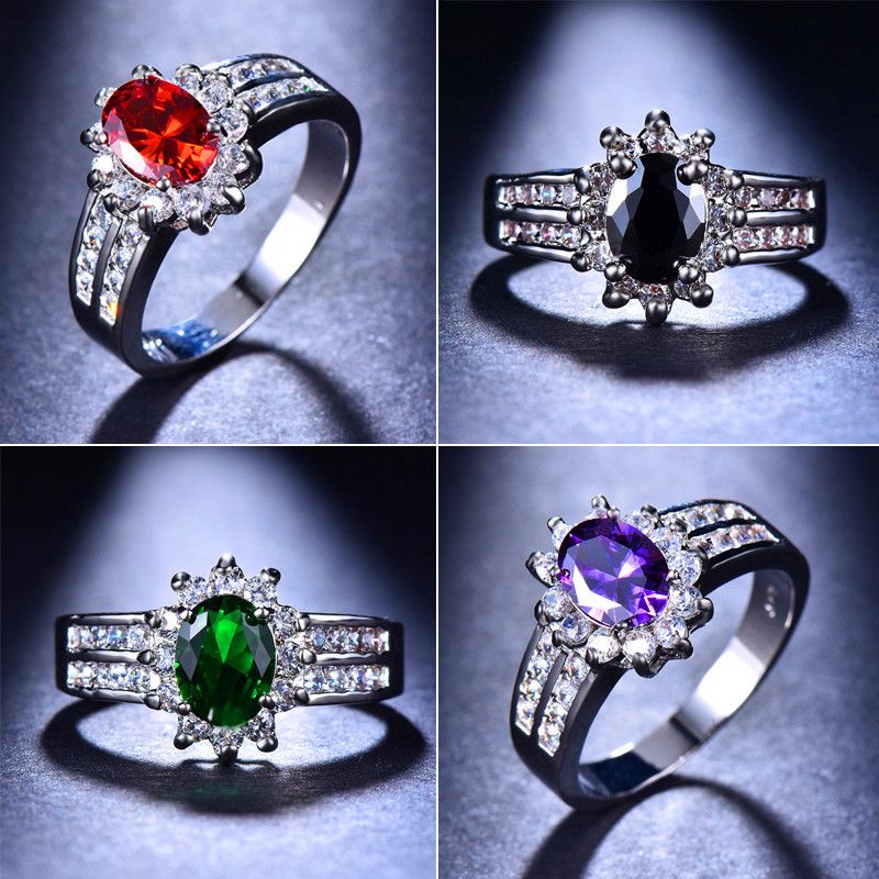 Cute Male Female Red Green Purple Black Stone Ring Vintage 925 Silver Wedding Rings Band Promise Engagement Ring New Year Gifts