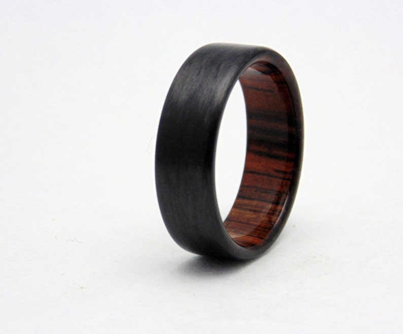 Carbon Fiber Wedding Band With Cocobolo Wood Handmade Carbon Fiber And Wood Ring