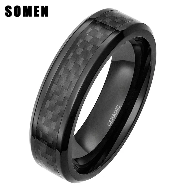 Us 8 02 12 Off Somen Ceramic Men S Wedding Rings Black Carbon Fiber Inlay Men Engagement Ring Male Fashion Jewelry In Wedding Bands From Jewelry