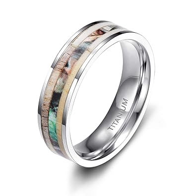 Tigrade 6mm 8mm Titanium Rings Deer Antler Camo Inlaid Wedding Band Comfort Fit Size 5 12