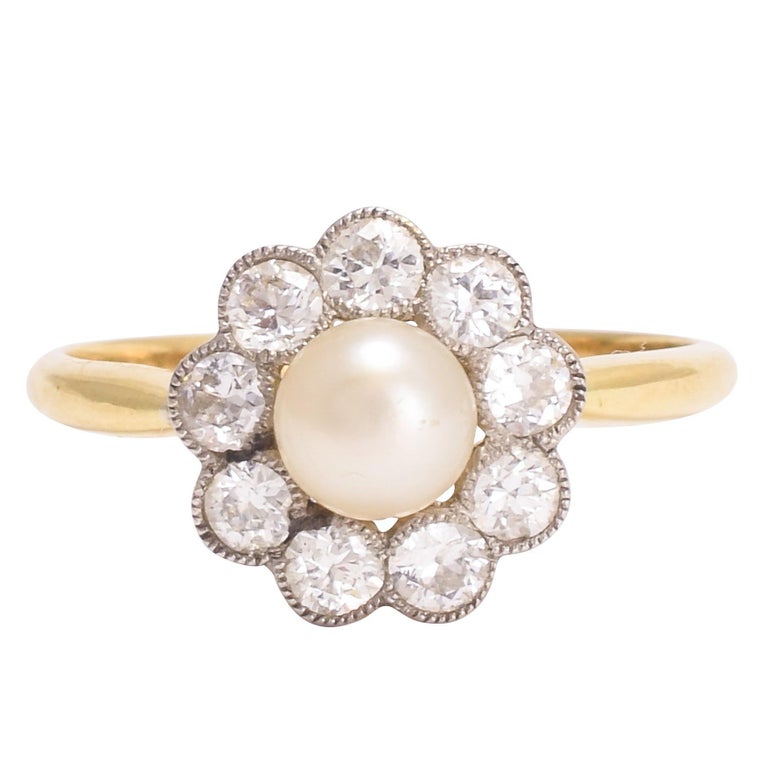 Antique Edwardian Pearl Diamond Flower Ring