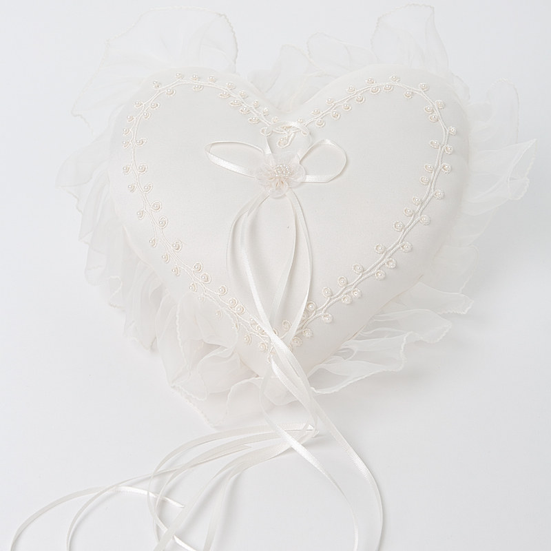 Wedding Ceremony Ivory Heart Shape Wedding Ring Bearer Pillow With Pearl