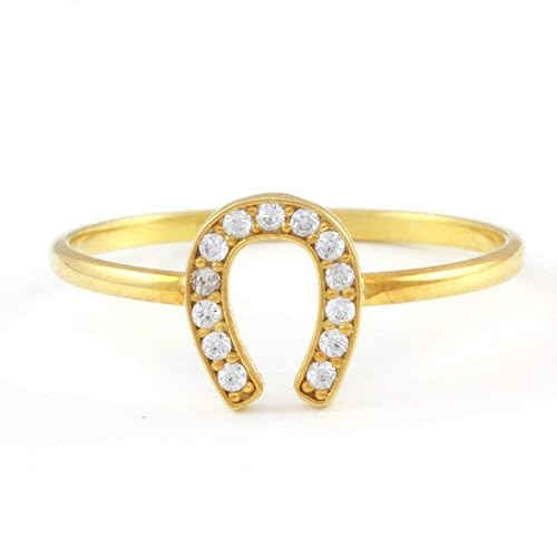 Amazon Com Lucky Horseshoe Diamond Ring 14k Solid Gold White Or