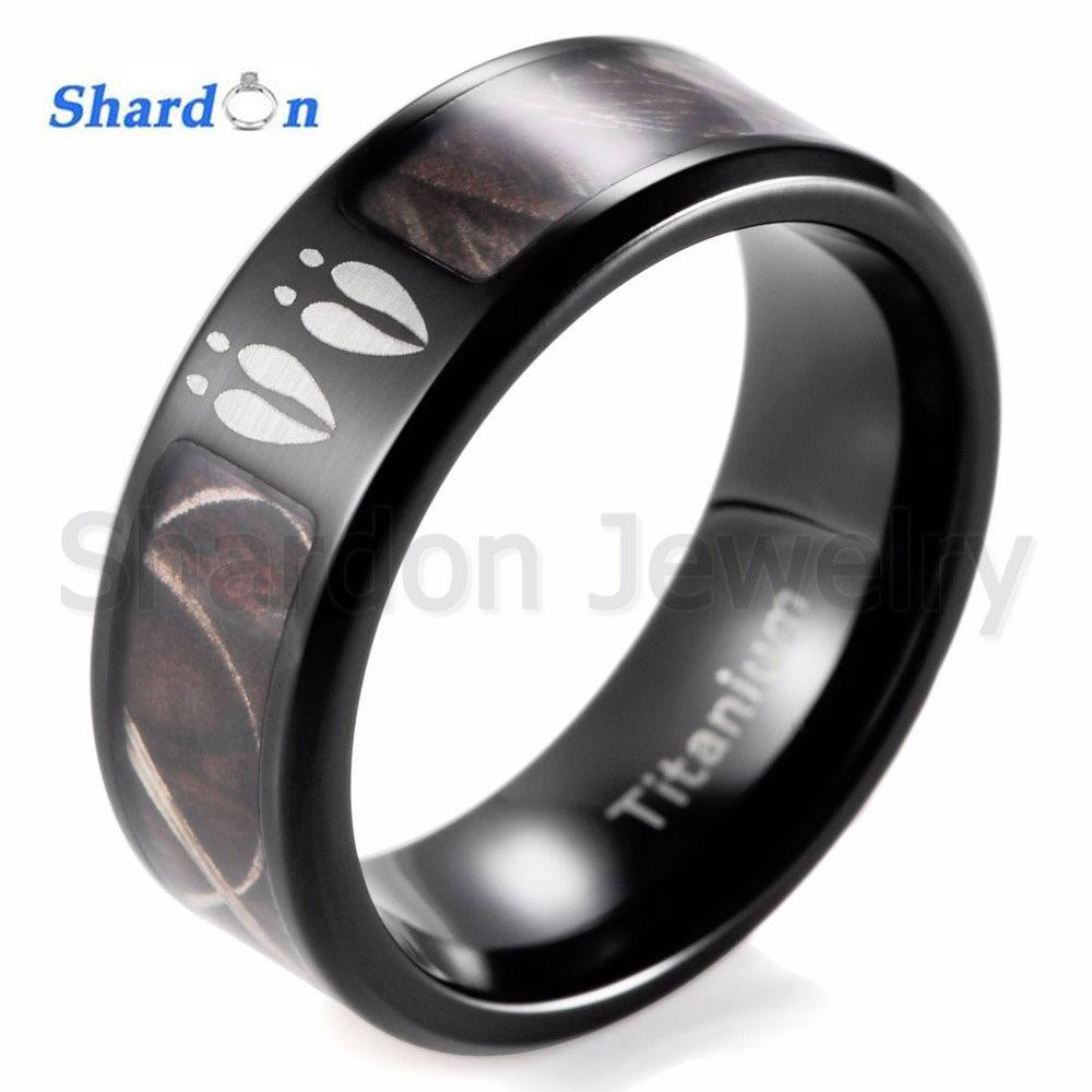 Shardon Men S Black Titanium Deer Tracks Realtree Camo Ring Outdoor Hunting Engagement Wedding Band Ring