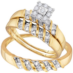 10k Gold Round Diamond Matching Trio His Hers Wedding Ring Set