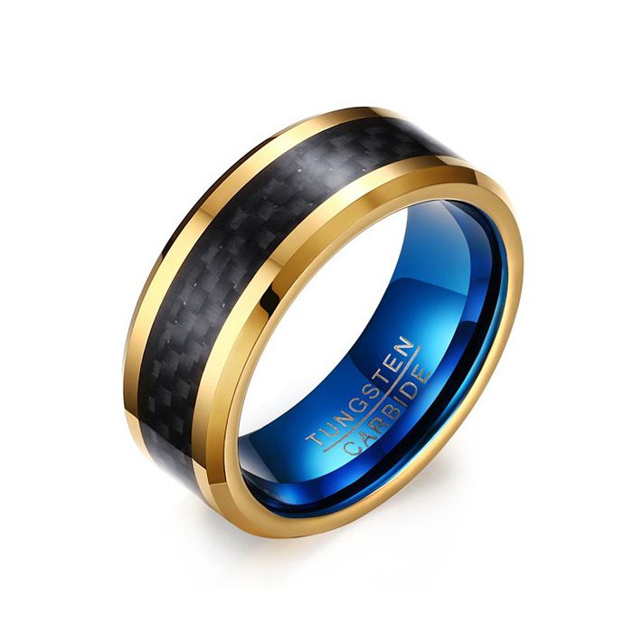Tungsten Carbide Jewlery Men S Wedding Band Engagement Ring Ip Gold Blue Plated With Black Carbon Fiber Inaly 8mm