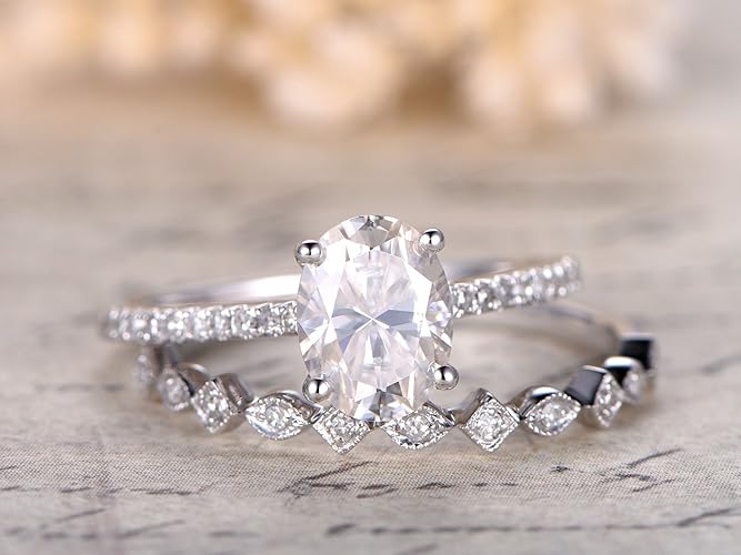 Amazon Com Moissanite Wedding Ring Set 6x8mm Oval Cut Moissanite