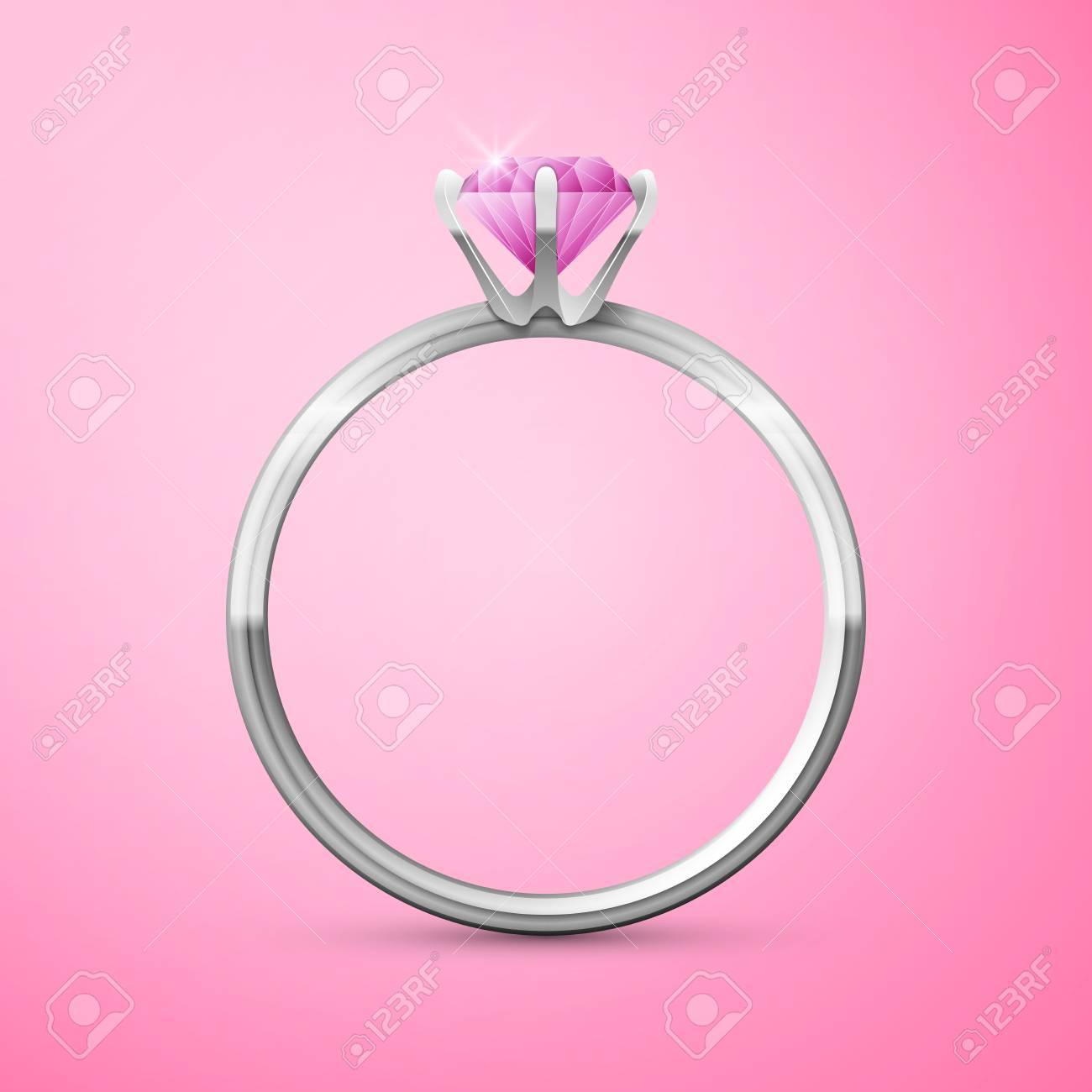 Silver Wedding Ring On Pink Background Excellent Vector Illustration