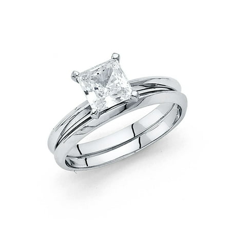 14k White Gold Princess Solitaire Cz Engagement Ring Plain Wedding Band Bridal Ring Cz Set Size 5
