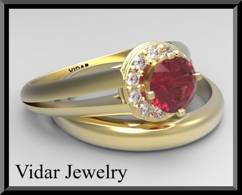 Red Ruby And Diamond Wedding Ring Set 14k White Yellow Gold Engagement Ring Set Halo Luxury Custom Unique Wedding Ring Set Halo Ruby Rings
