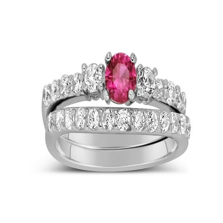 Details About Three Stone Ruby Diamond Wedding Ring Set White Gold Wedding Set