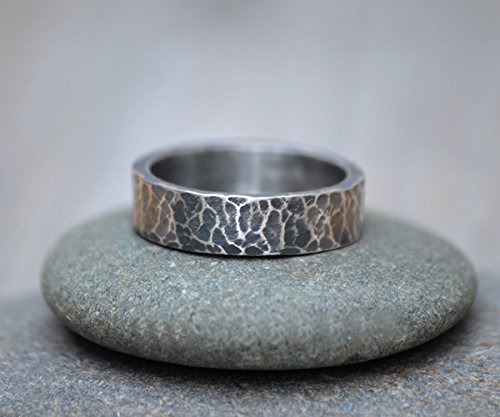 Oxidised Hammered Effect Wedding Band In Sterling Silver With