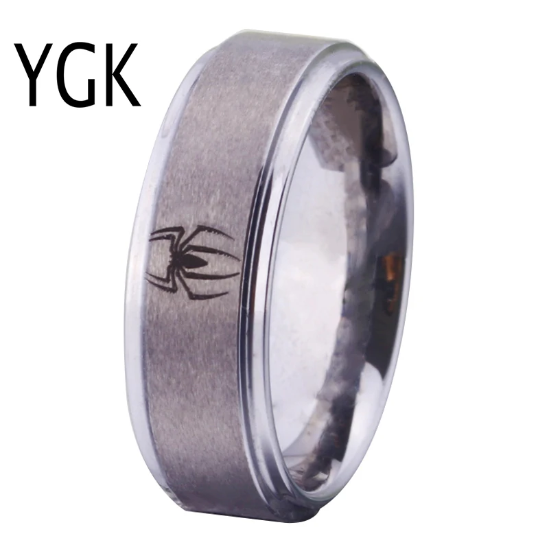 Us 16 19 10 Off Free Shipping Top Quality Fine Ring Hot Sales 8mm Matte Silver Stepped Spiderman Design Men S Comfort Tungsten Wedding Band Ring In