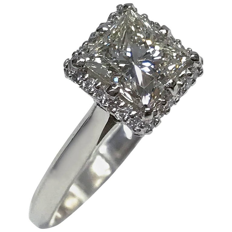 A 3 Carat Princess Cut Center Diamond Surrounded By Baguettes Of