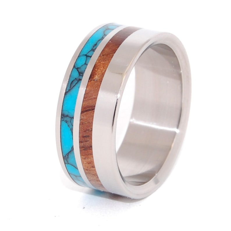 Titanium Wedding Band Turquoise Wedding Ring Wooden Wedding Ring Mens Ring Womens Ring Unique Wedding Ring Eco Friendly Ring Lucid