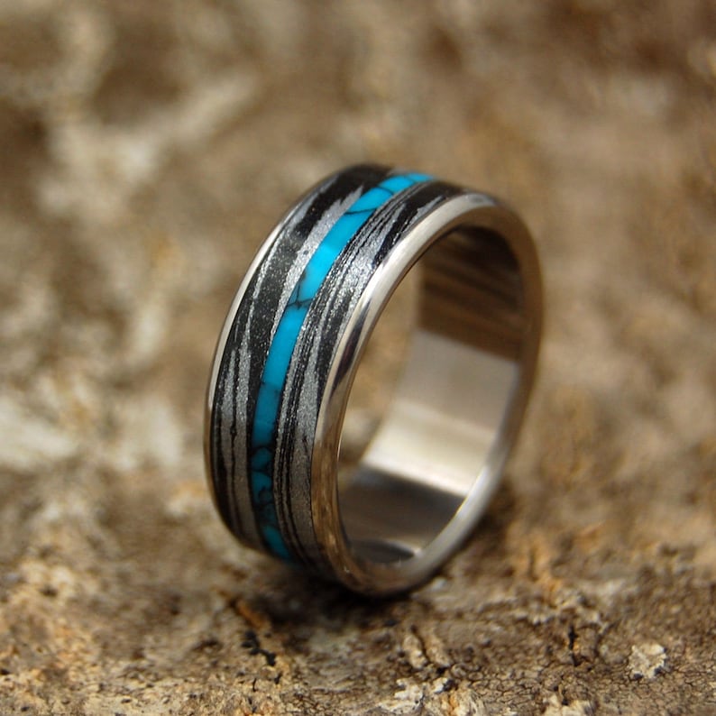 Titanium Wedding Ring Turquoise Ring Womens Ring Mokume Gane Ring Unique Rings Desirous