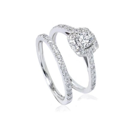1 Ct Diamond Cushion Halo Engagement Wedding Ring Set 10k White Gold