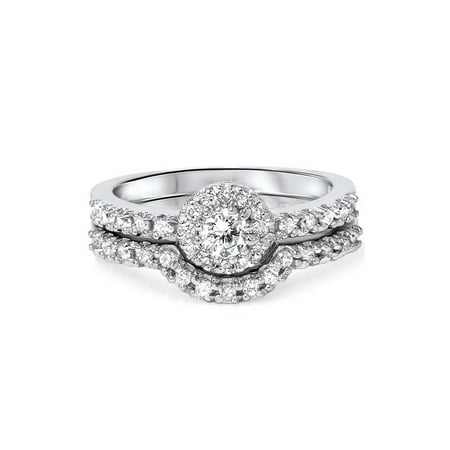 1ct Halo Diamond Engagement Wedding Ring Set 10k White Gold