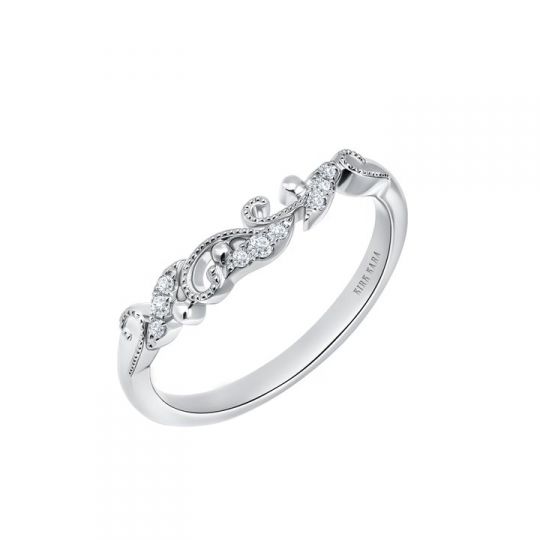 Kirk Kara Angelique Diamond Milgrain Scroll Wedding Band In White Gold