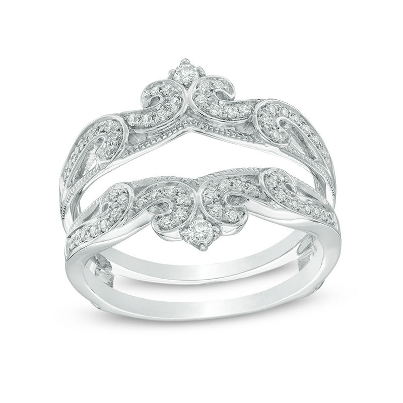 1 3 Ct T W Diamond Vintage Style Crowned Solitaire Enhancer In 14k White Gold Zales Outlet