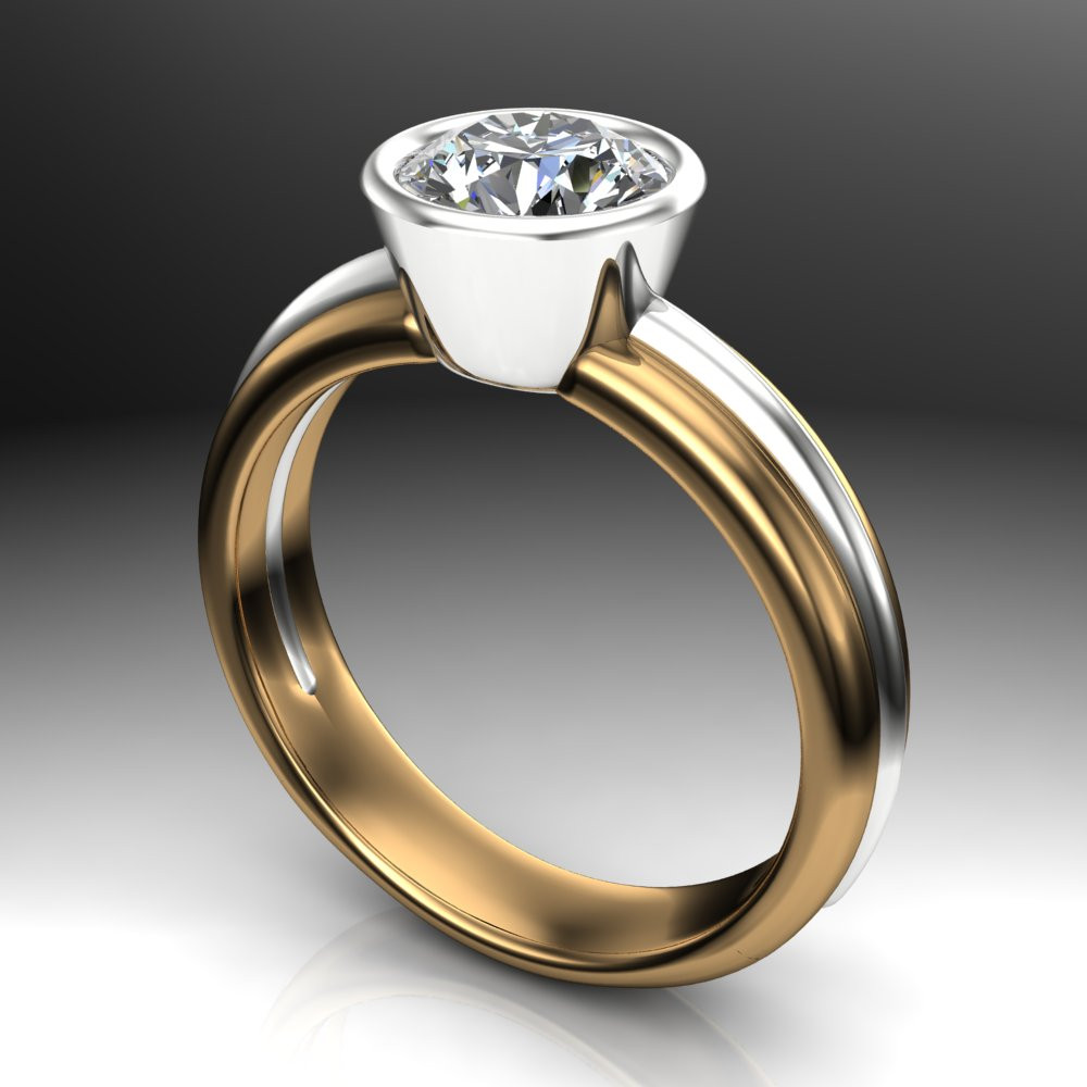 Two Tone Bezel Engagement Ring Round 1 Carat Diamond