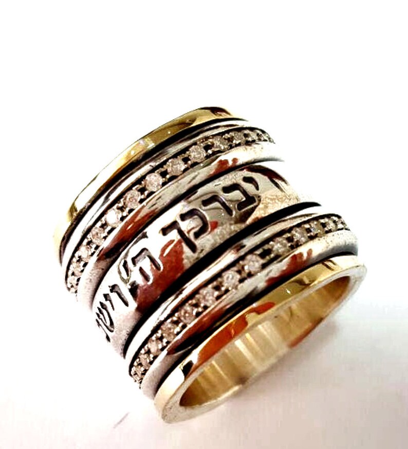 Inspirational Ring Israeli Jewelry Hebrew Priestly Blessing Silver Gold Ring Cz Zircons