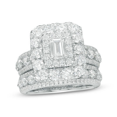 4 Ct T W Certified Emerald Cut Diamond Double Frame Multi Row Bridal Set In 14k White Gold I I1 Zales Outlet