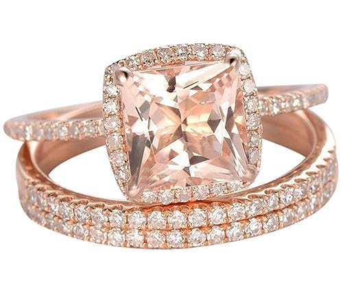 Sale On Trio Wedding Ring Set 2 Carat Morganite And Diamond Trio
