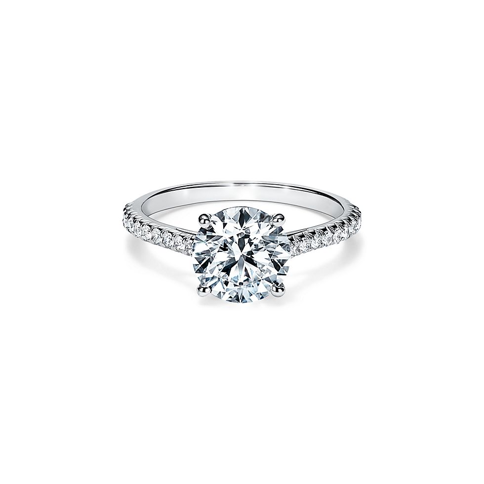 Tiffany Novo Round Brilliant Engagement Ring With A Pave Diamond Platinum Band
