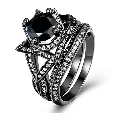 Zhenyul Women Retro Gothic Black Gold Ring Round Cut Cz Anniversary Wedding Bridal Bands Vintage Engagement Promise Rings Jewelry Set