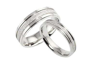 Starryjewelry His Hers Matching Set Titanium Steel Wedding Bands Couple Ring His Size O Q S T W Y Hers Size J M O Q Sold By Pair Please Email