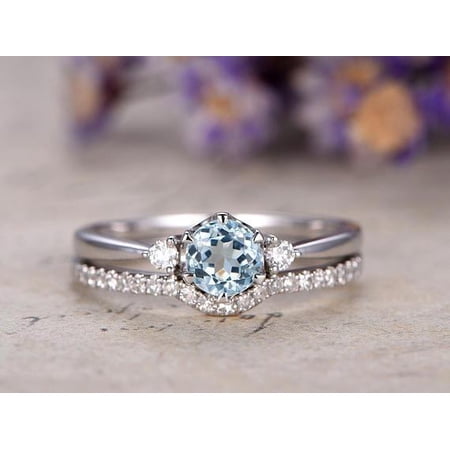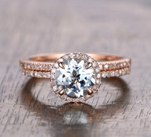 Details About Wedding Ring Sets Round Cut Aquamarine Diamonds Engagement Ring 14k Rose Gold