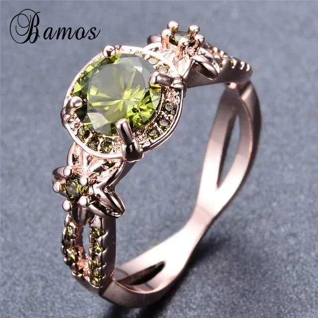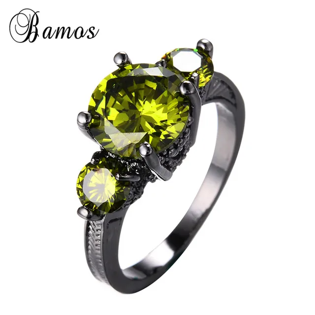 Us 4 99 Bamos Exquisite August Birthstone Black Gold Filled Bridal Wedding Jewelry Round Charming Olive Green Aaa Zircon Ring Best Gift In Wedding