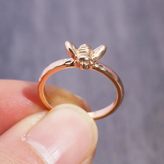 1pcs Simple Tiny Solid Gold Color Copper Bee Finger Rings Gold Hammered Band Stacking Rings Wedding Anniversary Jewelry