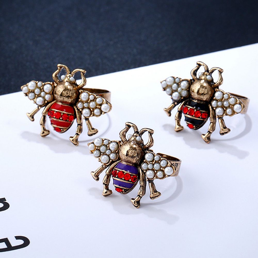 New Luxury Brand Bee Open Ring Brand Designer Bee Pearl Rhinestone Finger Wedding Ring Jewelry Wedding Accessories Gift Free Shipping