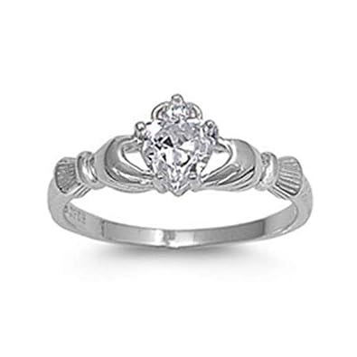 Huitan Claddagh Ring With Birthstone Design Halo Cz Prong Setting Best Engagement Wedding Rings For Women