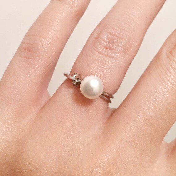 Freshwater Pearl Engagement Ring Dainty Wedding Ring Sterling Silver Stacking Ring Set June Birthstone Ring For Women Cubic Zirconia