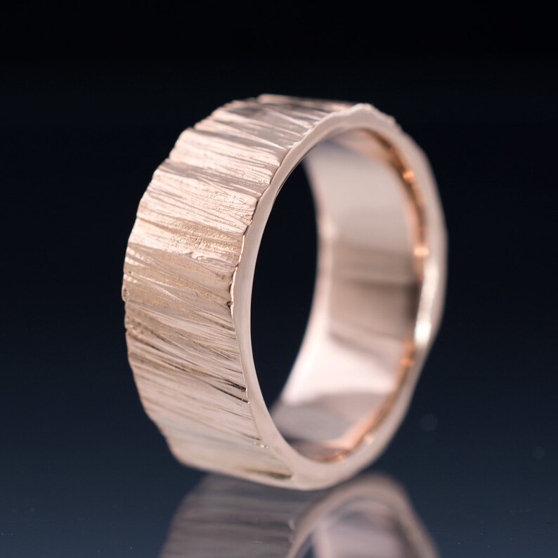Saw Cut Rose Gold Wide Wedding Band Ring Textured 14k Rose Gold Wedding Ring Mens Wedding Band Womens Wedding Ring Unique Handmade Ring