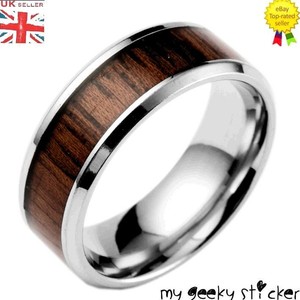 Details About 8mm Mens Tungsten Carbide Brown Wood Inlay Wedding Band Stainless Ring Uk Seller