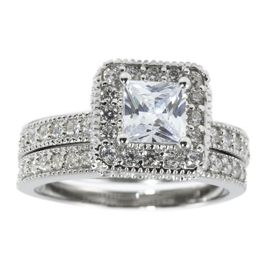 5mm Princess Cut Aaa Cz In Micro Pave Halo Sterling Wedding Engagement Ring Set Ebay