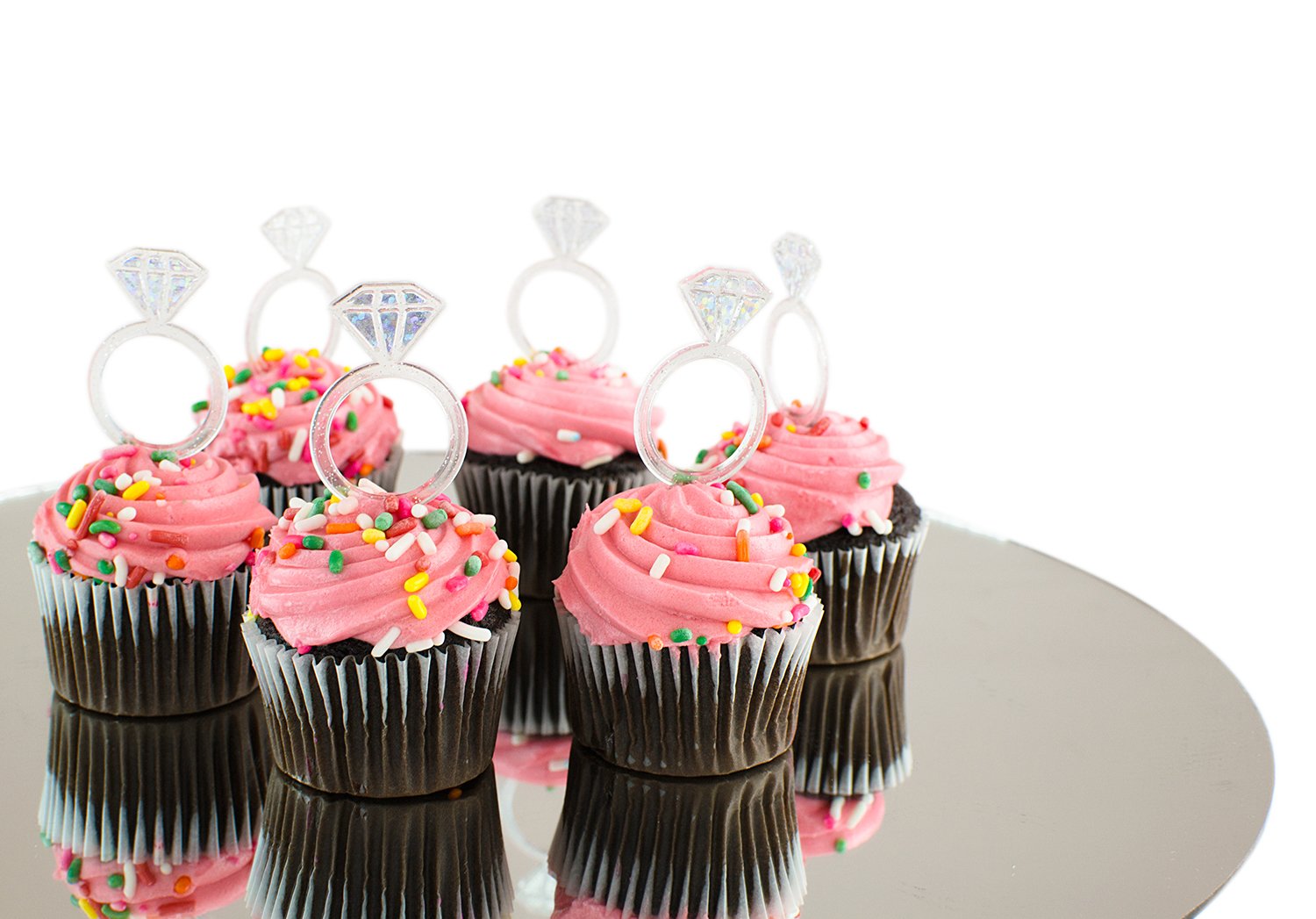 Plastic Acrylic Clear Glitter Diamond Design Engagement Ring Cupcake Toppers For Bridal Shower Wedding Table Cake Decorations Party Supply Favor