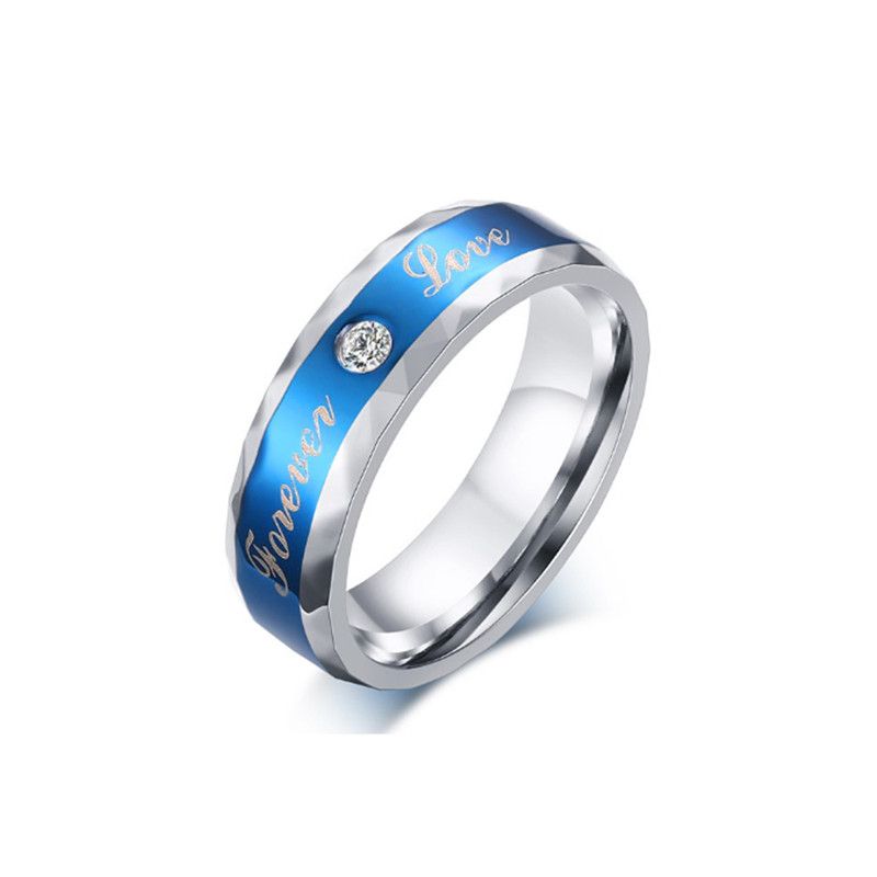 6mm Stainless Steel Simple Blue Zircon Finger Rings For Men Party Wedding Band Hip Pop Rings Designer Jewelry High Quality Engagement Rings For Women